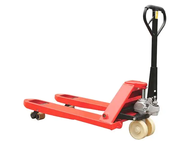 Ручные гидравлические тележки грузоподъемностью 5000 кг. Стандартная комплектация включает двойные полиамидные ролики и грузовые колеса.